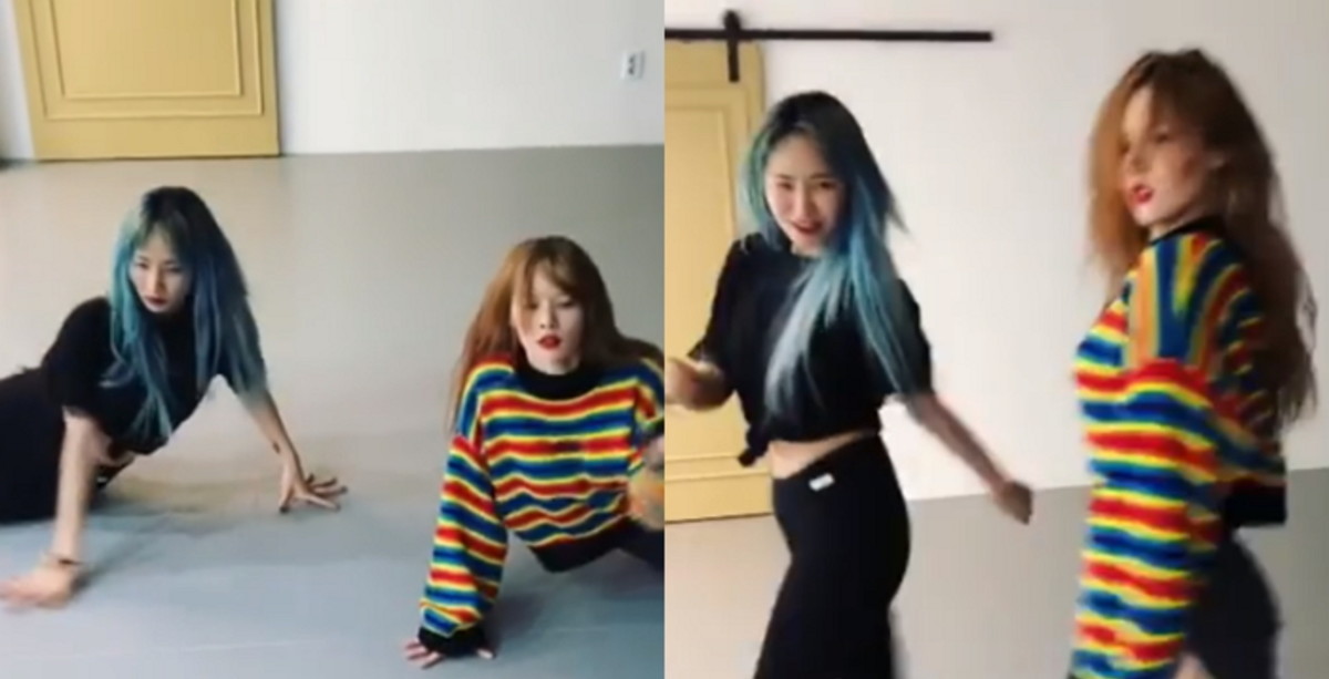 영상 속 예은은 연습실로 보이는 곳에서 현아와 춤을 추고 있다.