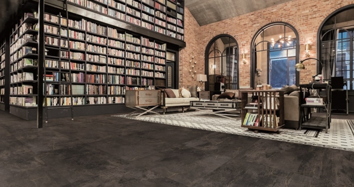 '프레스티지 – 크랙 콘크리트'는 LG하우시스 만의 차별화된 기술인 연속동조엠보 공법을 통해 콘크리트의 느낌과 질감을 사실적으로 표현한 상공간용 타일 바닥재 제품이다.
