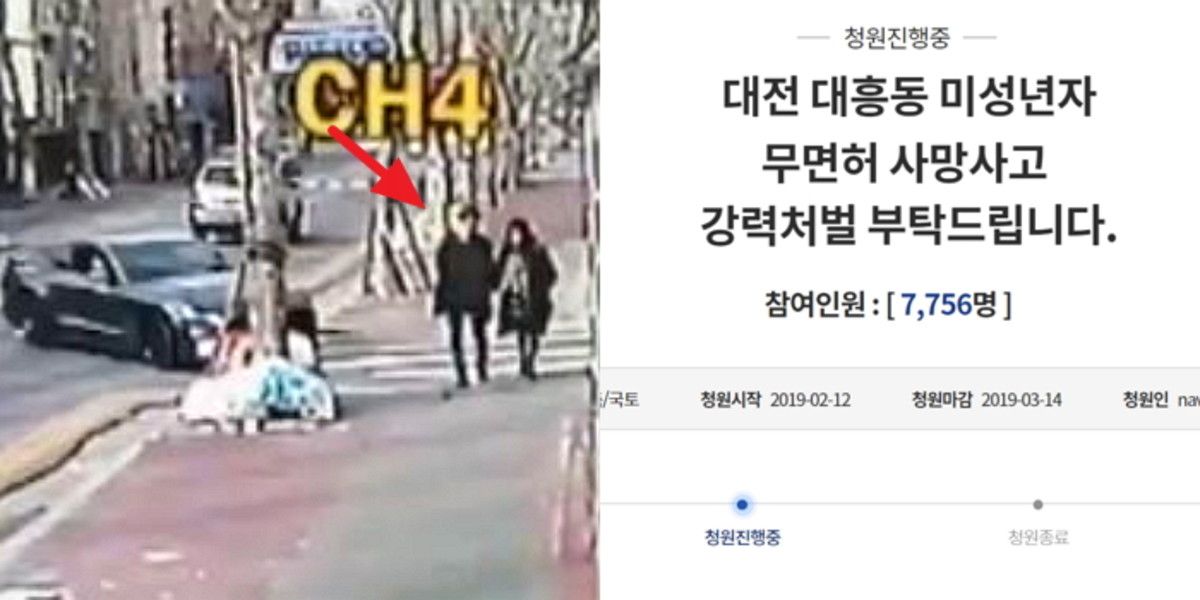 지난 12일 청와대 게시판에는 "대전 대흥동 미성년자 무면허 사망사고 강력 처벌 부탁드립니다"라는 이름의 청원이 올라왔다.