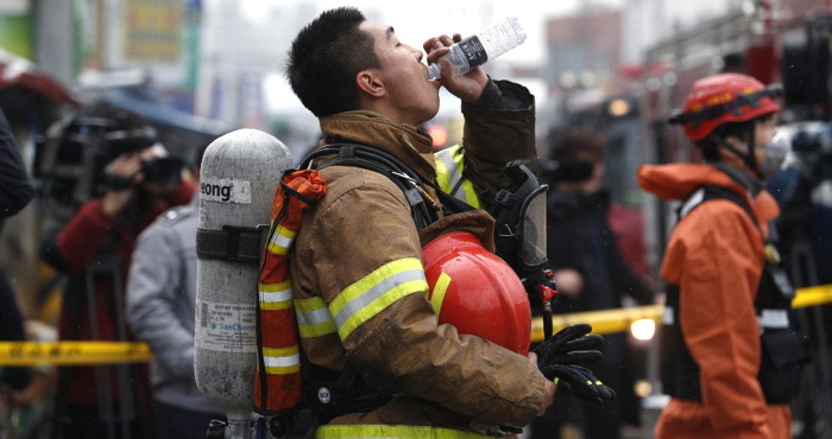 또한 더운 모양인지 소방관들은 찬물을 벌컥벌컥 들이켜며 땀을 식혔다.