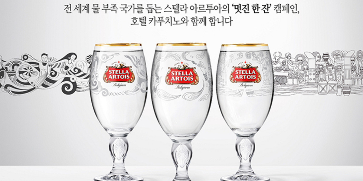 15일 벨기에 프리미엄 맥주 '스텔라 아르투아'는 호텔 카푸치노와 함께 전 세계 물 부족 국가를 돕기 위한 컬래버레이션 패키지를 선보인다고 밝혔다.