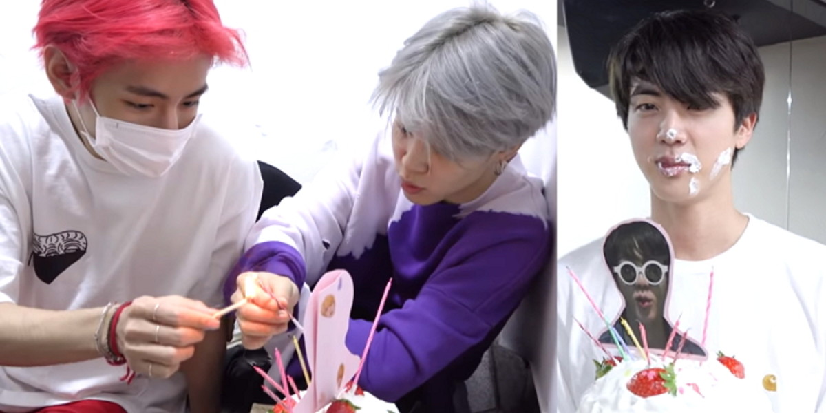 방탄소년단 멤버들은 맏형 진의 얼굴에 생크림을 마구 묻히며 유쾌하게 장난쳤다.