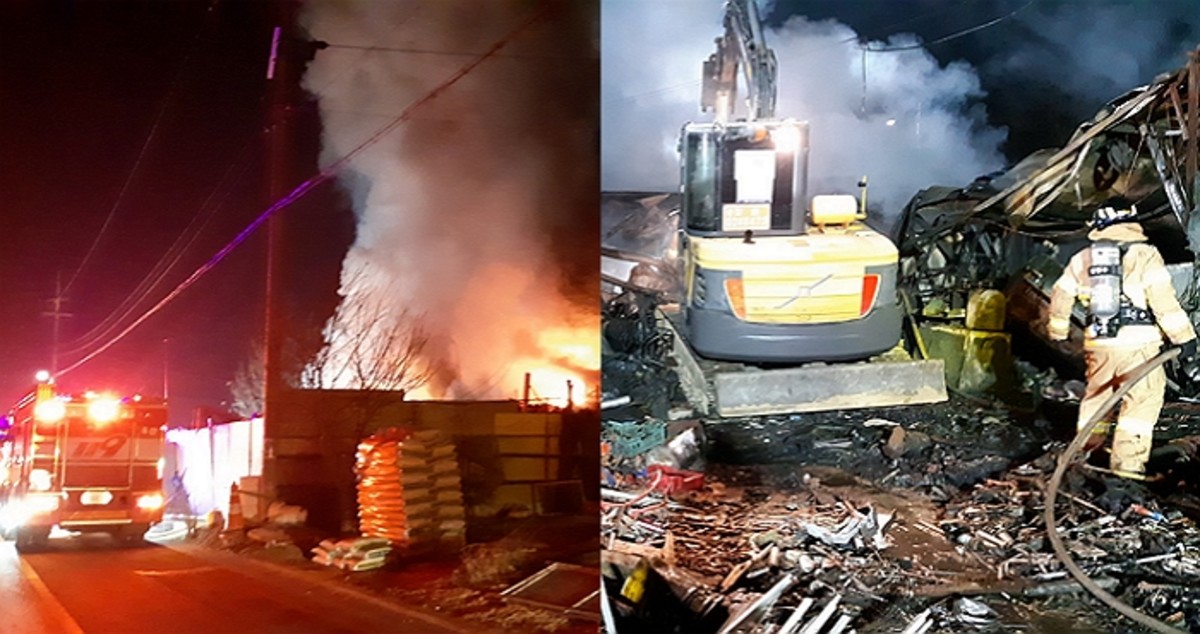 17일 강원도 소방본부는 오전 1시 34분쯤 강원 원주시 지정면의 한 고물상 내 주택에서 불이 났다고 밝혔다.