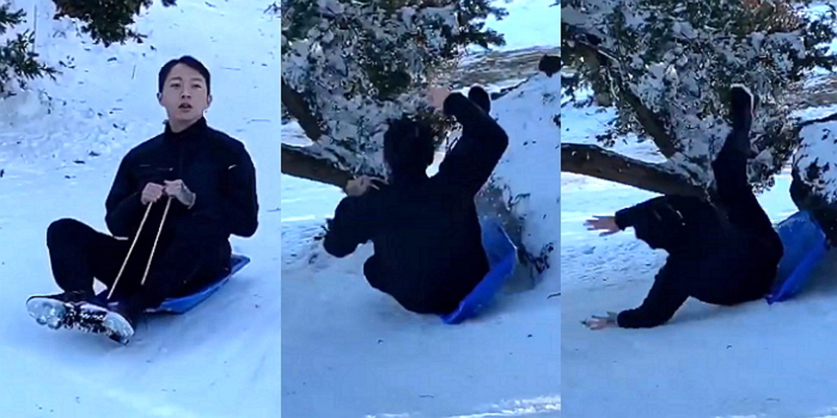공개된 영상에는 눈썰매를 즐기는 우원재의 모습이 담겨있다.