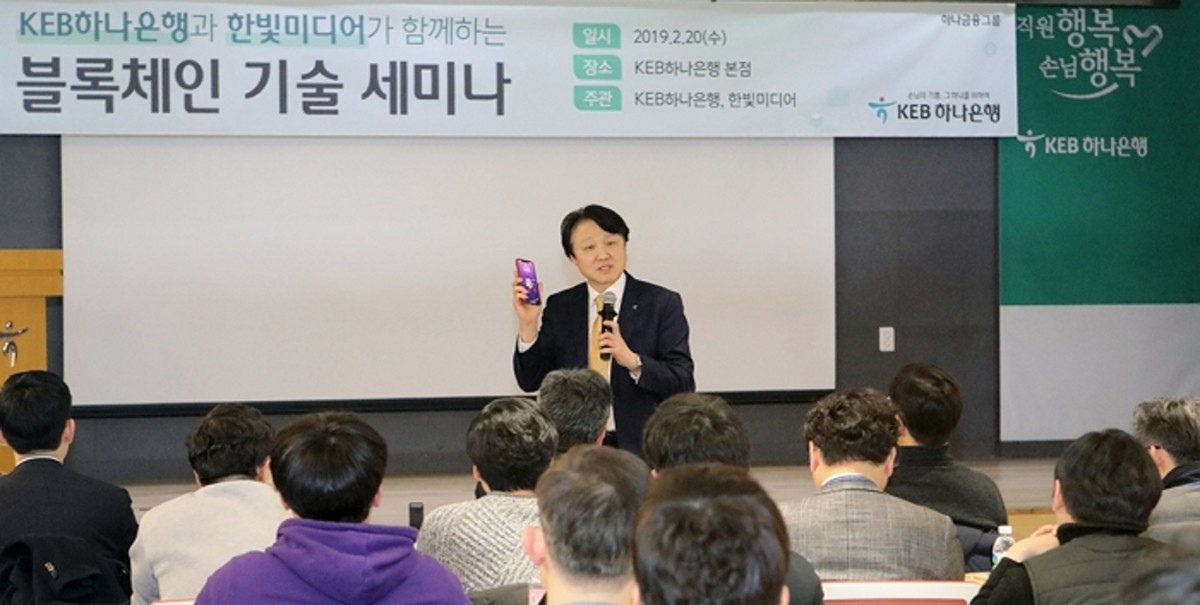 [인사이트] 윤혜경 기자 = 함영주 은행장이 이끄는 KEB하나은행이 국내 은행 최초로 블록체인 기술세미나를 열었다.