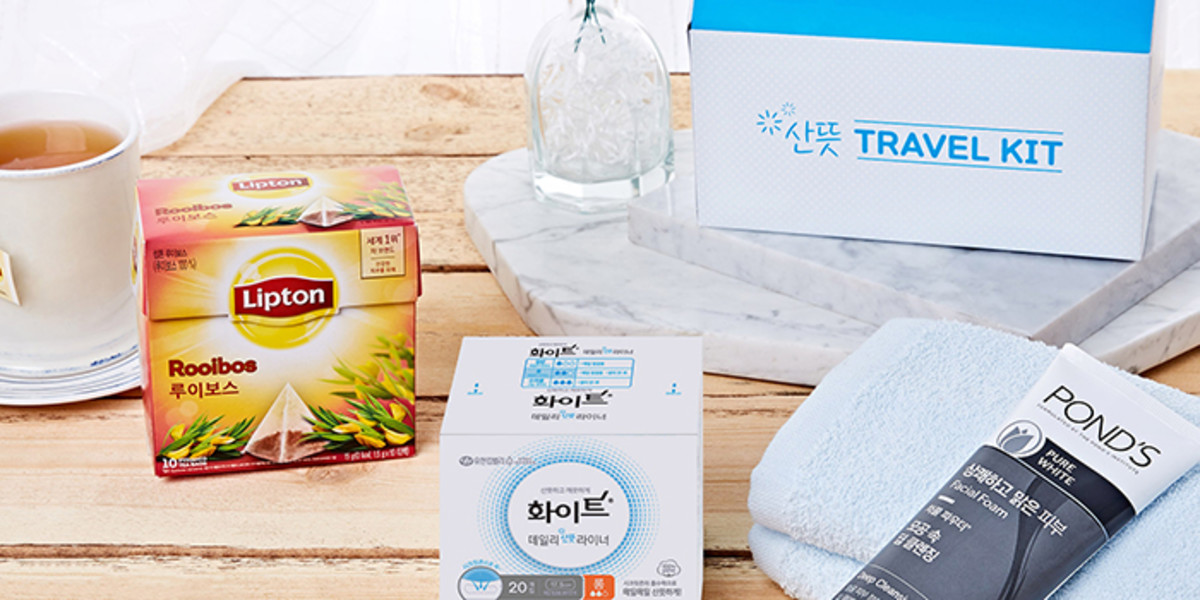 트래블키트는 산뜻한 여행과 데이트를 위한 화이트 데일리 산뜻 라이너, 폰즈 훼이셜폼 퓨어화이트, 립톤 루이보스 허브티 3종으로 구성됐다.