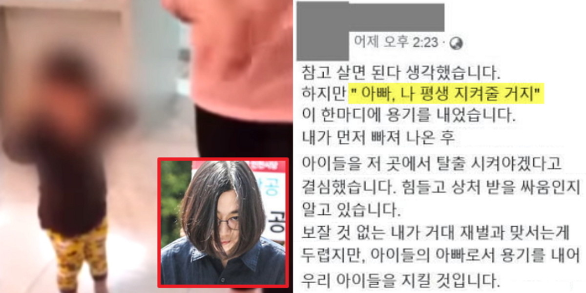 더불어 그는 "힘들고 상처받을 싸움인지 알고 있다. 보잘것없는 내가 거대 재벌과 맞서는 게 두렵지만 아이들의 아빠로서 용기를 내어 아이들을 지키겠다"고 전했다.