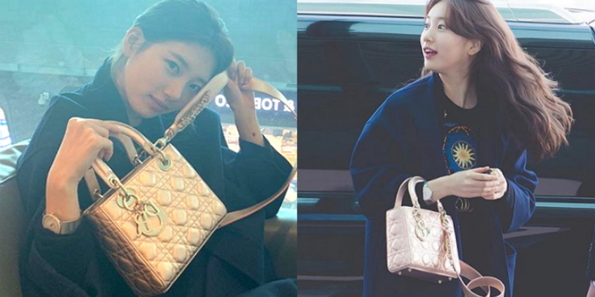 공개된 사진 속 수지는 공항에서 편안하게 앉아 자신의 가방을 자랑하고 있다.
