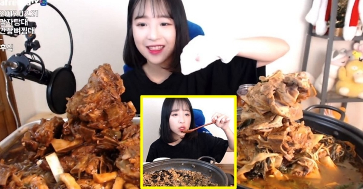 공개된 영상 속 쯔양 앞에는 감자탕과 뼈다귀 찜이 수북이 쌓여있다.