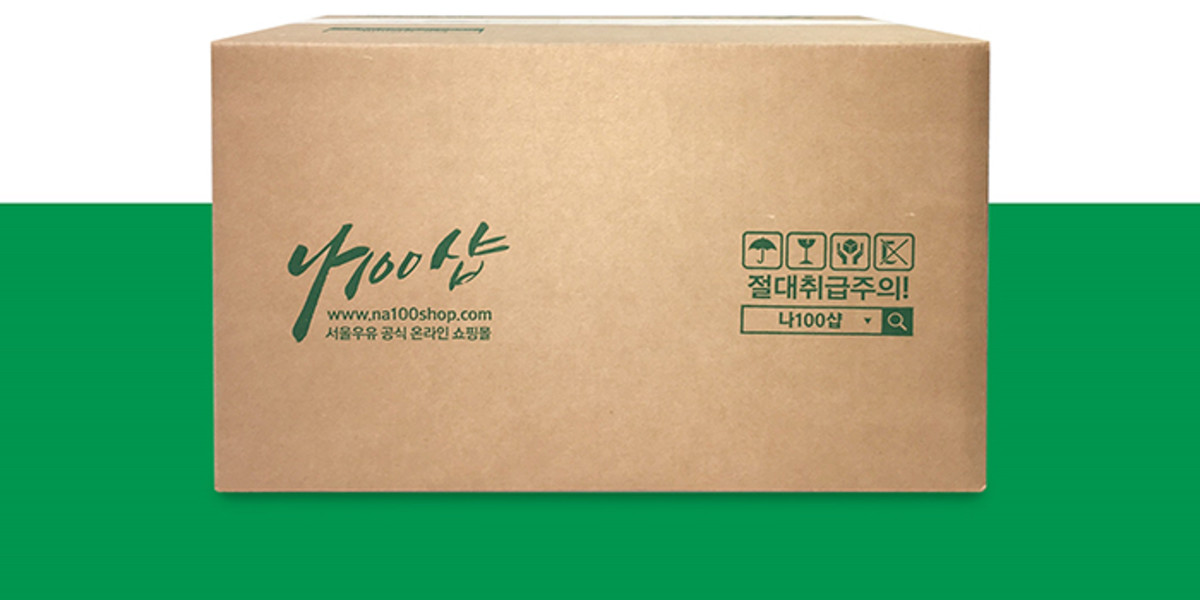 '나100샵'의 '친환경 냉장 배송박스'는 열전도율이 낮은 두 겹의 골판지를 사용해 열이 차단되며, 박스에 빈틈이 없도록 짜임새 있게 디자인되어 보냉력을 강화한 것이 특징이다.