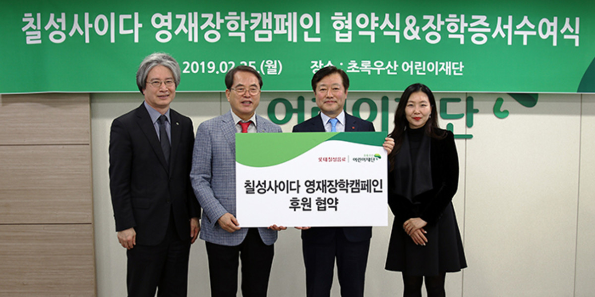 협약식은 경제적 어려움으로 재능계발의 기회가 부족한 미술 및 예체능 영재아동의 교육 지원을 위한 것으로, 장학 캠페인을 통해 초록우산어린이재단의 미술 영재아동 작품을 칠성사이다 600ml 페트병 라벨에 담고 판매수익금 일부를 후원하는 방식으로 진행될 계획이다.