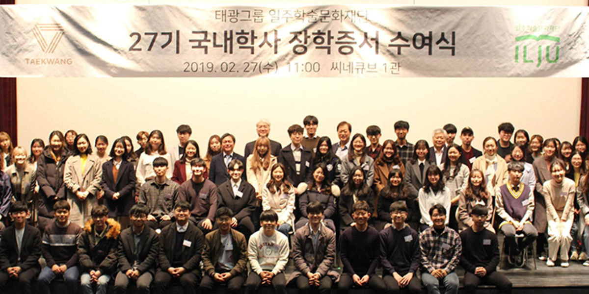 27일 태광그룹 일주학술문화재단은 '2019학년도 국내 학사 장학증서 수여식'을 개최했다고 밝혔다.