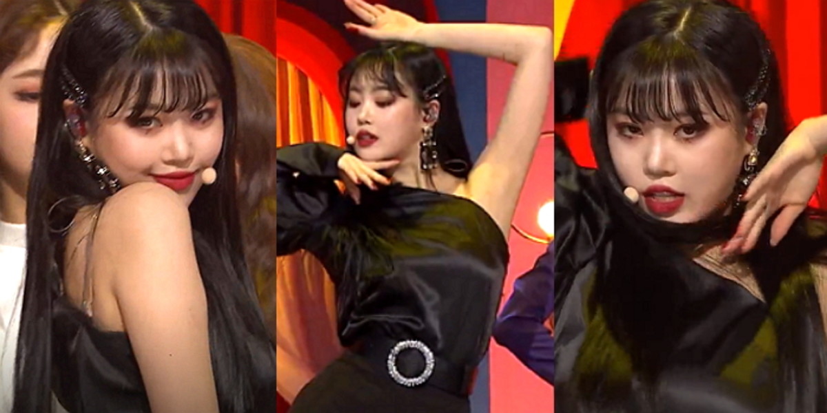 멤버 수진은 레드 립에 올블랙 착장을 한 채 무대 위에 올랐다. 특히 수진은 한쪽 어깨가 드러난 블라우스로 관능적인 매력을 강조했다.