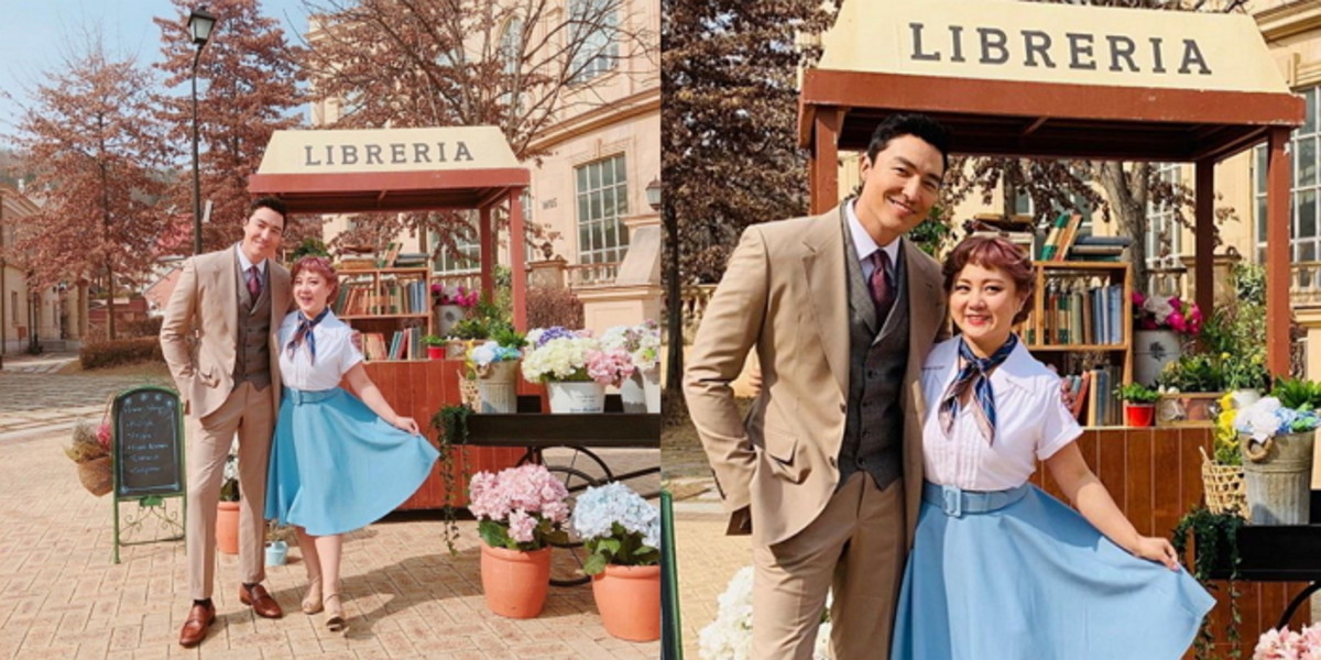 공개된 사진 속 박나래는 복고풍의 정장을 맞춰 입고 다정하게 포즈를 취하고 있다.