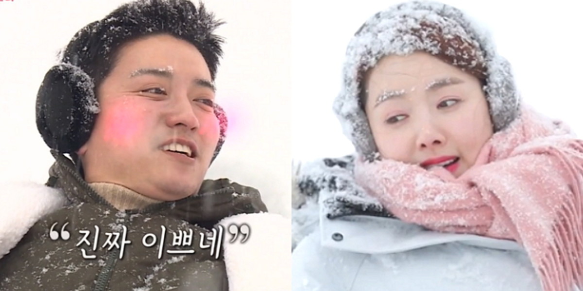 그 말에 인교진은 눈이 잔뜩 묻은 그녀의 얼굴을 가만히 보더니 흐뭇한 미소를 지으며 "진짜 이쁘네"라고 답했다.