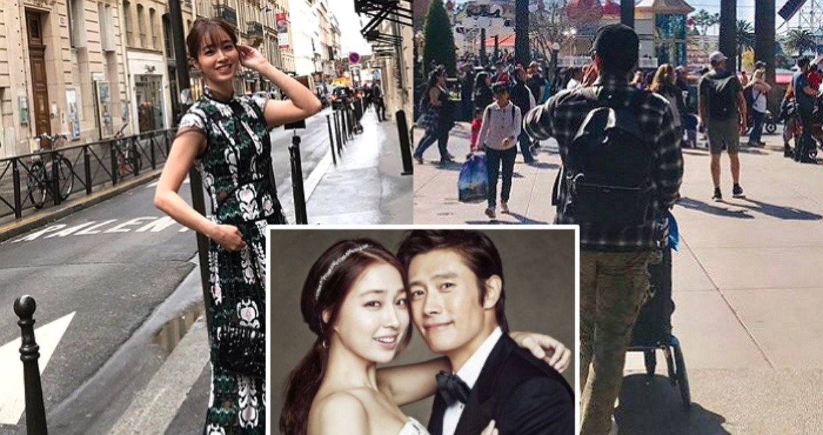 그가 공개한 사진에는 아이의 유모차를 끌고 있는 이병헌의 뒷모습과 디즈니랜드 풍경이 담겼다.