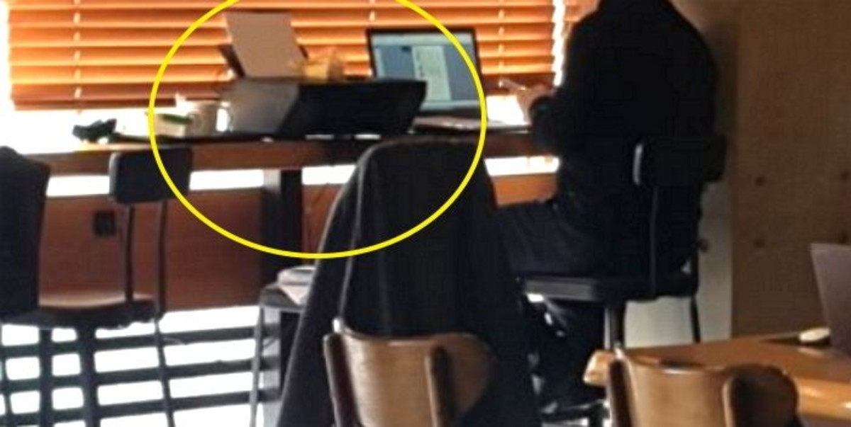 실제로 글쓴이가 함께 올린 사진에는 커다란 프린터와 노트북이 카페 테이블 위에 떡하니 올려져 있다.