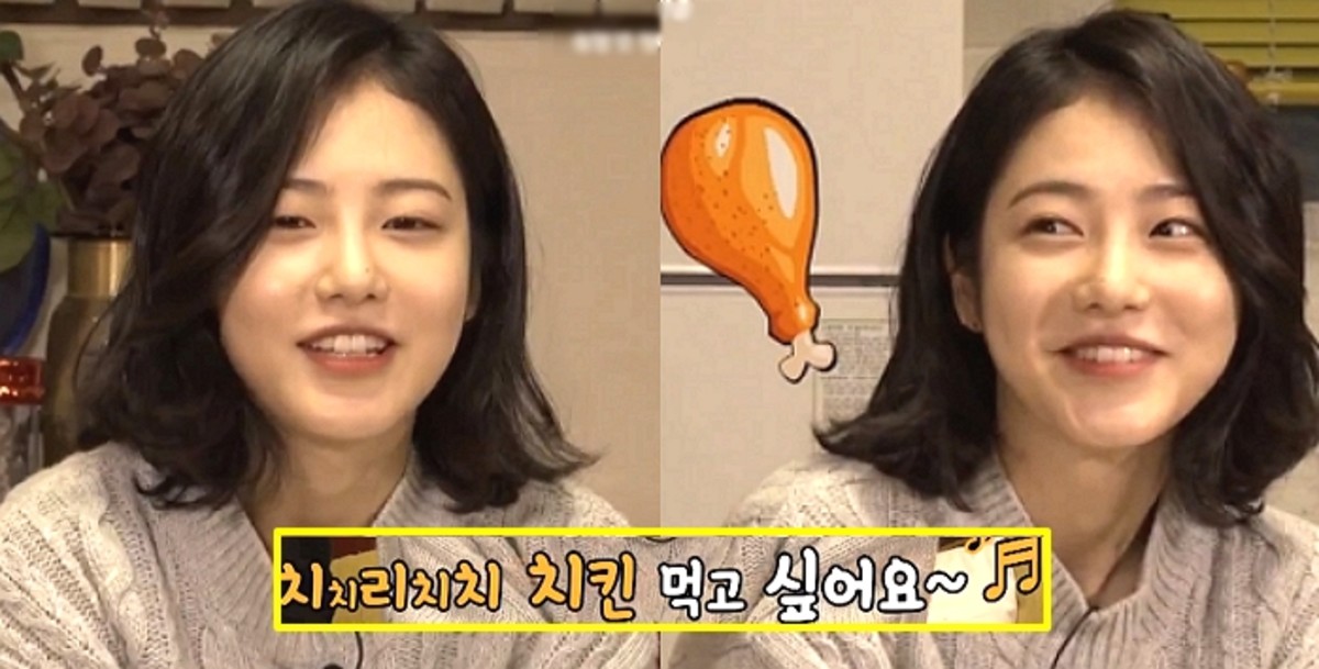 이어 지금 먹고 싶은 음식이 뭐냐는 MC의 물음에 신예은은 치킨이 먹고 싶다고 답하며 일명 '치킨송'을 불러나가기 시작했다.