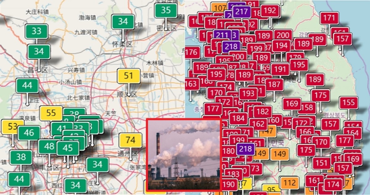 [인사이트] 디지털뉴스팀 = 한반도와 가까운 중국 동쪽 해안(동부 연안)에 잔뜩 지어진 공장과 쓰레기 소각장에서 발생하는 미세먼지가 한국으로 잔뜩 유입되고 있다.