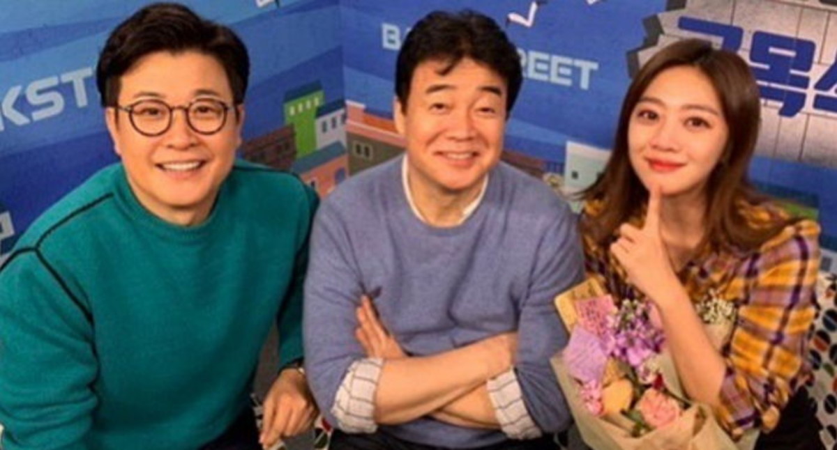공개된 사진 속 조보아는 '골목식당'에 함께 출연한 백종원, 김성주와 함께 다정한 모습으로 포즈를 취하고 있다.