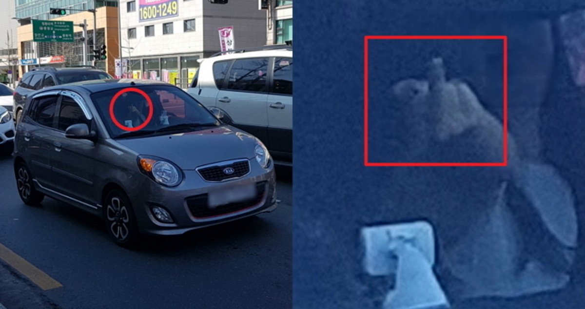 공개된 사진 속에는 운전자의 곧게 핀 가운뎃손가락이 고스란히 담겨 있었다.