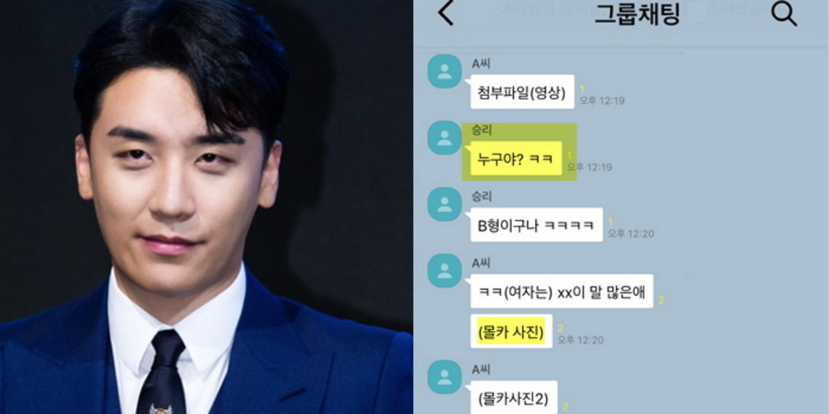 11일 SBS funE 측은 승리와 또 다른 남성 가수 2명이 카카오톡 단체 대화방에서 여성을 몰래 찍은 불법 영상물 '몰카'를 공유했다고 보도했다.