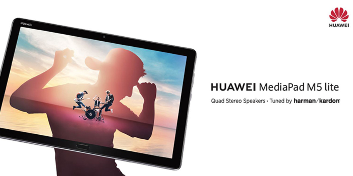 화웨이 미디어패드 M5 라이트는 하만카돈과 공동 개발한 쿼드 스피커가 탑재되어 고품질 사운드를 제공한다.