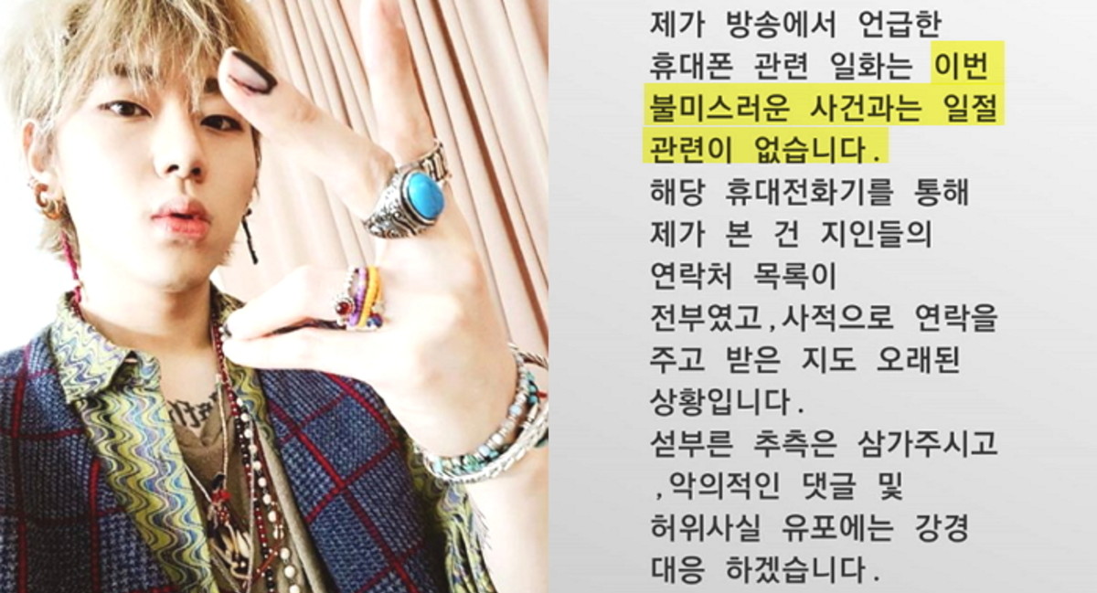 13일 새벽 지코는 자신의 인스타그램 계정 스토리에 "방송에서 언급한 휴대폰 관련 일화는 이번 불미스러운 사건과는 일절 관련 없다"고 전했다.