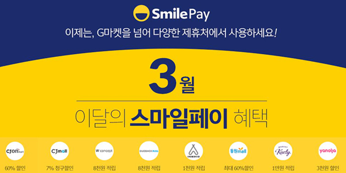 스마일페이는 2016년 론칭한 간편결제 서비스로 자사 사이트(G마켓, 옥션, G9)를 비롯해 식품·외식·문화·패션·라이프스타일 등 다양한 온, 오프라인 가맹점을 확대하고 있다.