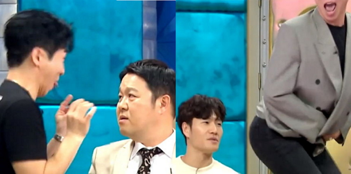 이어서 그는 손으로 김구라의 주걱턱을 사정없이 손으로 때리며 공격했다.