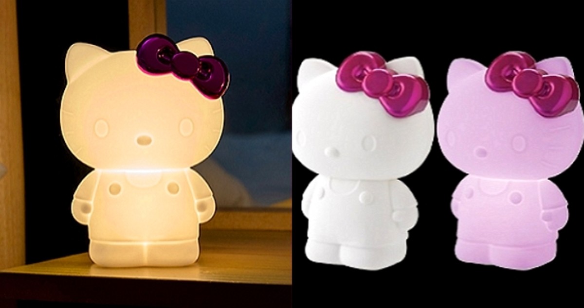한번 톡 터치하면 불이 켜진다. 본래 하얀색이었던 몸은 노랑 헬로키티로, 그다음에는 핑크 헬로키티로 변신한다.