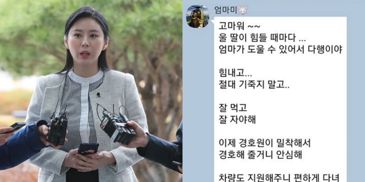 캡처 사진에 따르면 윤씨 어머니는 "딸이 힘들 때 엄마가 도울 수 있어 다행이다"며 "딸을 위해 경호원을 붙여 주겠다. 힘내고 절대 기죽지 말라"고 말했다.