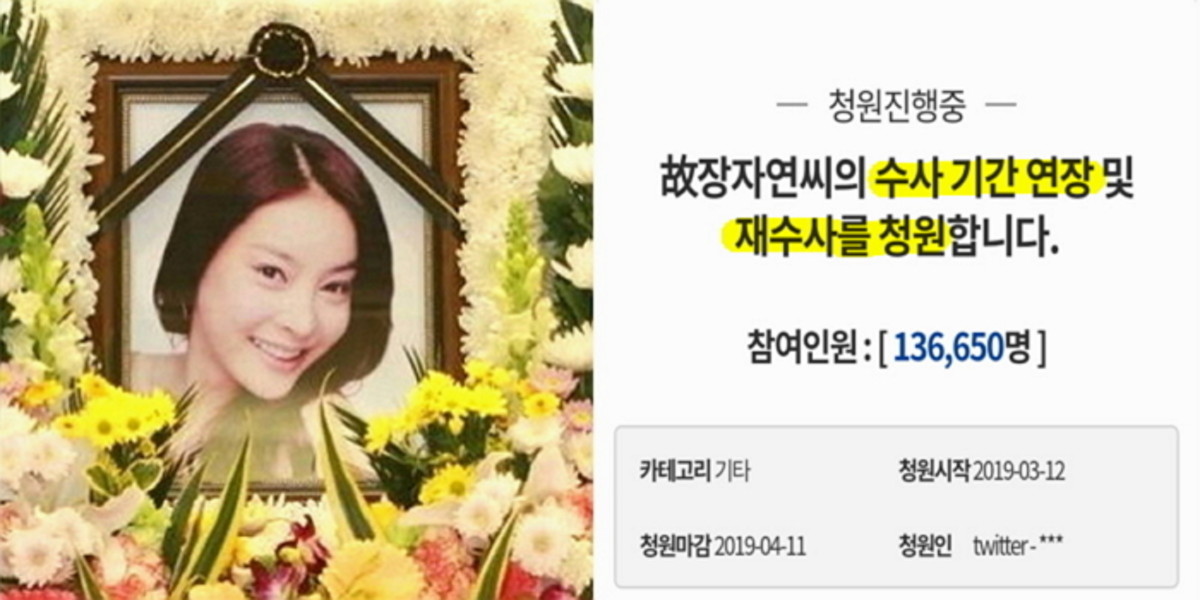 지난 12일 대한민국 청와대 국민청원 페이지에는 "故 장자연 씨의 수사 기간 연장 및 재수사를 청원합니다"라는 청원 글이 게재됐다.