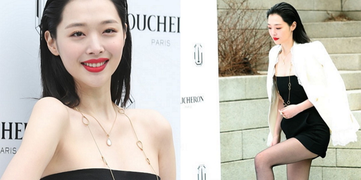 지난 14일 설리는 서울 중구 신라호텔에서 열린 주얼리 브랜드 '부쉐론' 이벤트 행사에 참석했다.