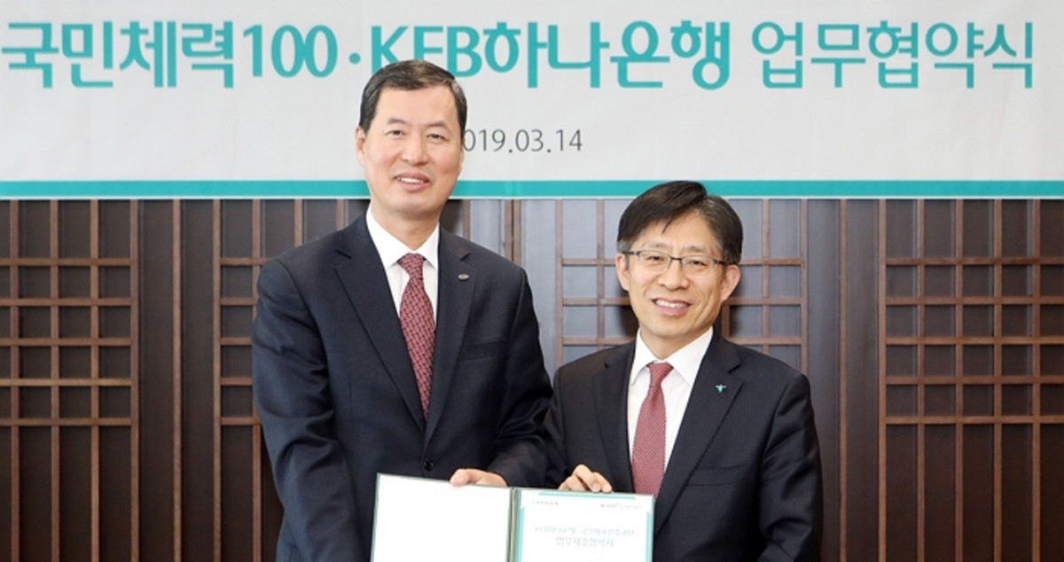 15일 KEB하나은행은 전날인 14일 서울시 중구 을지로 본점에서 '국민체력 100' 사업을 운영 중인 국민체육진흥공단과 국민 체력 및 건강 증진을 위한 업무협약을 체결했다고 밝혔다.