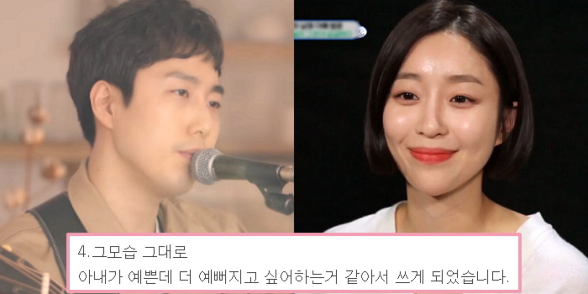 그는 '그모습 그대로'에 대해 "아내가 예쁜데 더 예뻐지고 싶어 하는 거 같아서 쓰게 됐습니다"라고 설명했다.