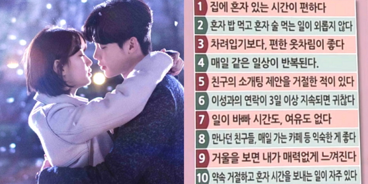 해당 내용은 '집에 혼자 있는 시간이 편하다', '이성과의 연락이 3일 이상 지속되면 귀찮다', '거울을 보면 내가 매력 없게 느껴진다' 등이 포함됐다.