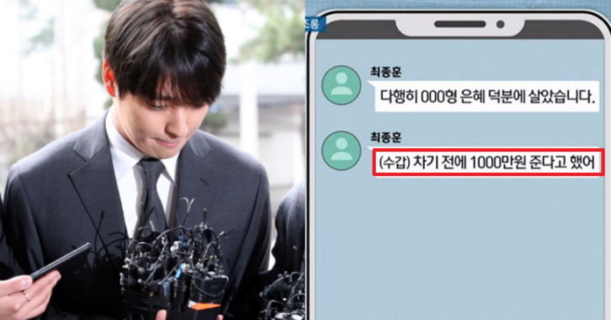 보도에 따르면 최종훈은 카카오톡 메신저를 통해 "OOO형 은혜 덕분에 살았습니다"라고 말했다.