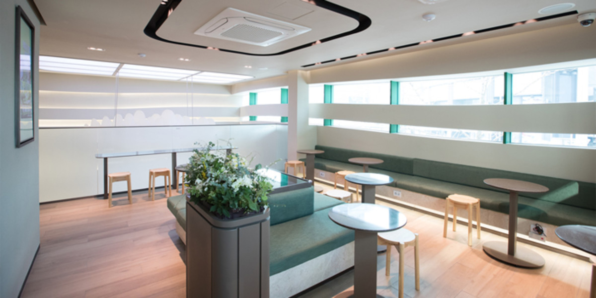 매장 1층은 계단식 공유 공간의 콘셉트로, 혼자 또는 친구와 오픈 된 공간에서 아이스크림을 즐길 수 있도록 디자인했으며, 2층은 테이블을 구비하여 편안한 분위기에서 아이스크림을 먹을 수 있는 공간으로 구성했다.