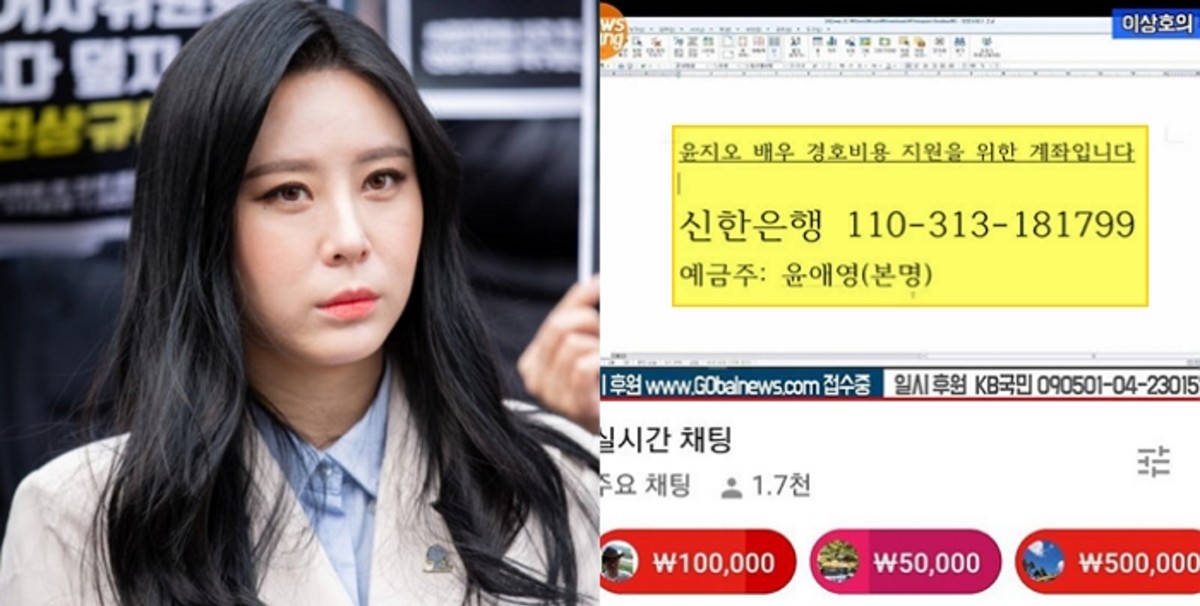 앞서 윤지오는 신변보호를 위해 이미 사비 약 1천만원을 경호비에 썼다고 '이상호의 고발뉴스'에서 밝힌 바 있다.
