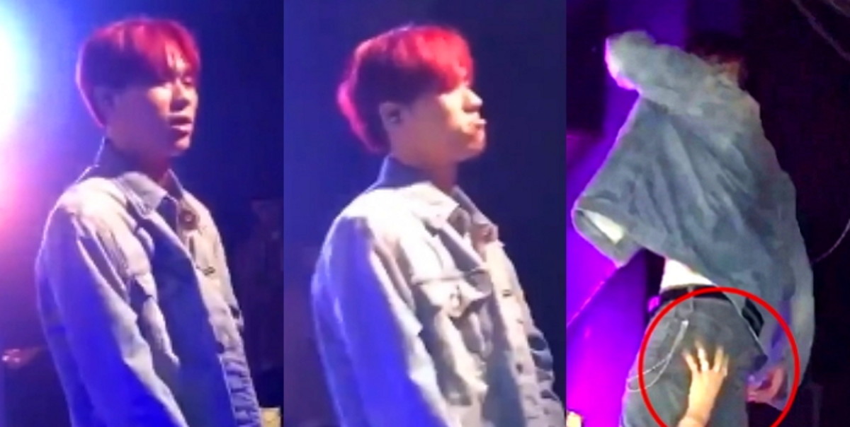 무대 도중 갑작스러운 성추행을 당한 식케이는 당황한 표정을 숨기며 계속 공연을 이어갔다.