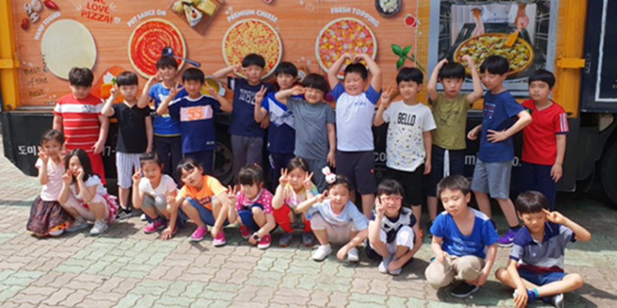 도미노피자는 사회적 기업 '행복한학교'의 방과후학교 프로그램에 참여해 아이들과 함께 직접 피자를 만들고 굽는 피자파티를 2018년 총 47회 진행했다.