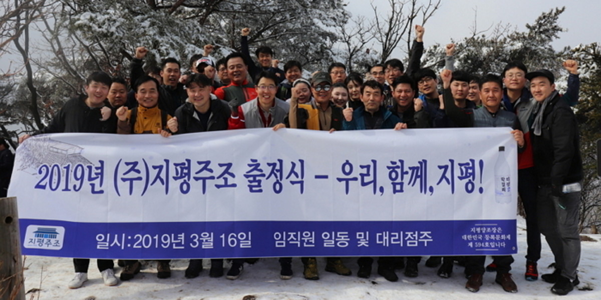 20일 지평주조는 지난 16일 청계산에서 '2019년 지평주조 출정식'을 가졌다고 밝혔다.