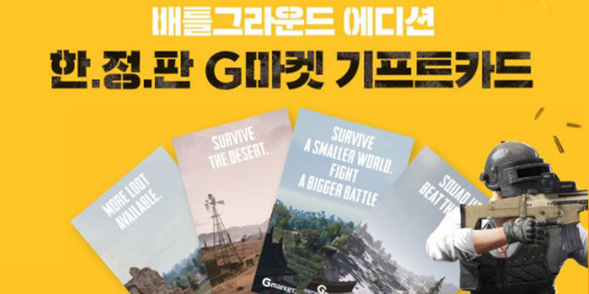20일 G마켓은 '플레이어언노운스 배틀그라운드'가 새겨진 한정판 기프트카드를 출시한다고 밝혔다.