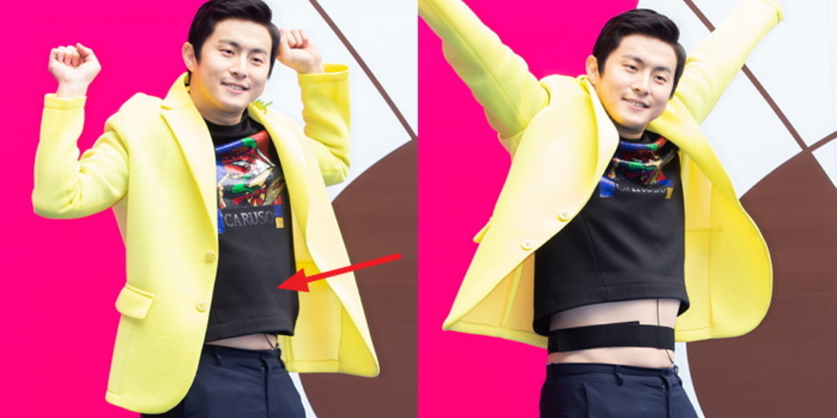 두 손을 번쩍 드는 동작을 취할 때에는 예기치 않게 새하얀 애교 뱃살(?)을 드러내 웃음을 자아냈다.