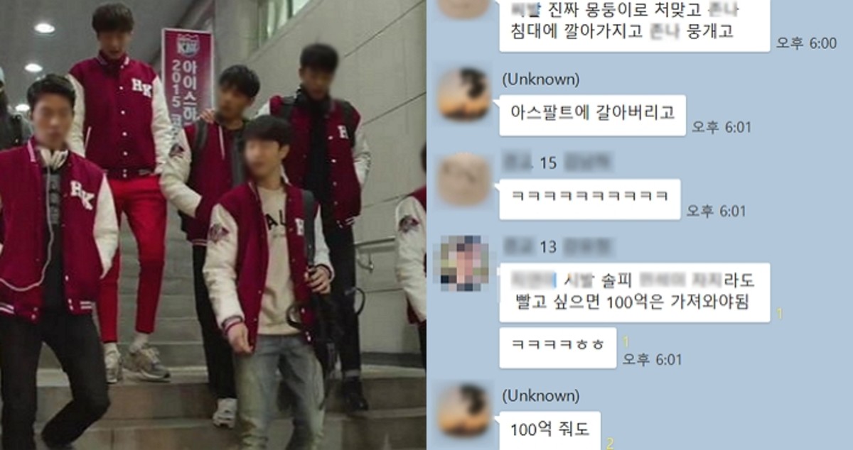 A씨가 공개한 단톡방 캡처 사진에는 한 여학우의 이름을 언급하며 '씨X 진짜 몽둥이로 처맞고 XX 침대에 깔아가지고 XX 뭉개고 아스팔트에 갈아버리고'라는 등의 폭언을 한 내용이 나왔다.