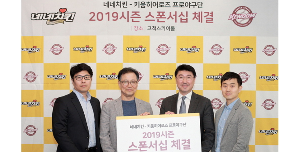 22일 네네치킨은 키움히어로즈와 '2019시즌 스폰서십' 계약을 체결하고 스포츠 마케팅 강화에 나선다고 밝혔다.