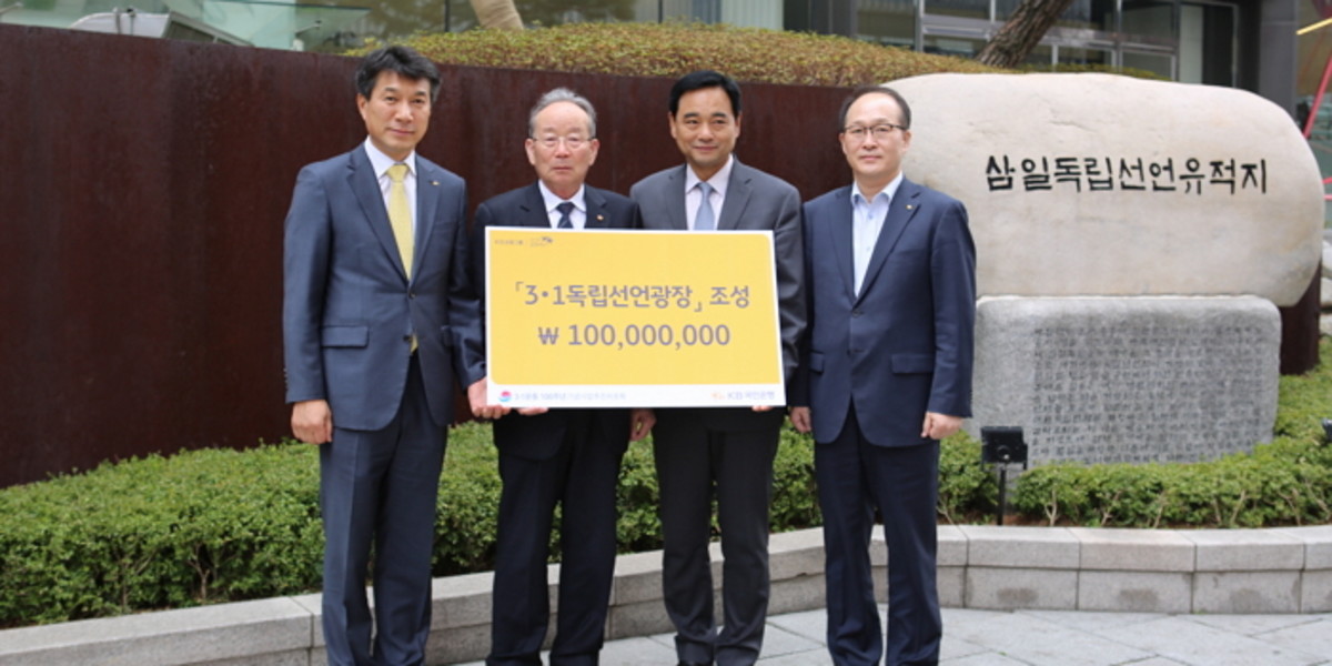 KB국민은행 관계자는 "앞으로 조성될 3·1독립선언광장을 통해 세상을 바꾼 100년 전 외침이 영원히 후손들에게 전달되길 바란다"며, "KB국민은행은 국민들이 지난 100년의 독립역사를 기억할 수 있도록 범국민적인 관심 확산에 적극적으로 노력하겠다"고 전했다.