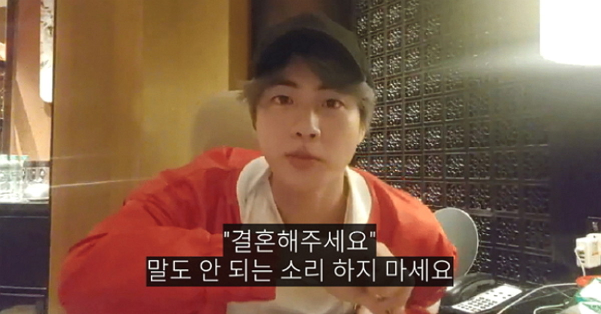 팬들의 청혼에 대응하는 자세 때문이다. 아이돌 특유의 팬 서비스로 스윗한 말로 대응할 법도 하지만, 진의 대처는 조금 남다르다.
