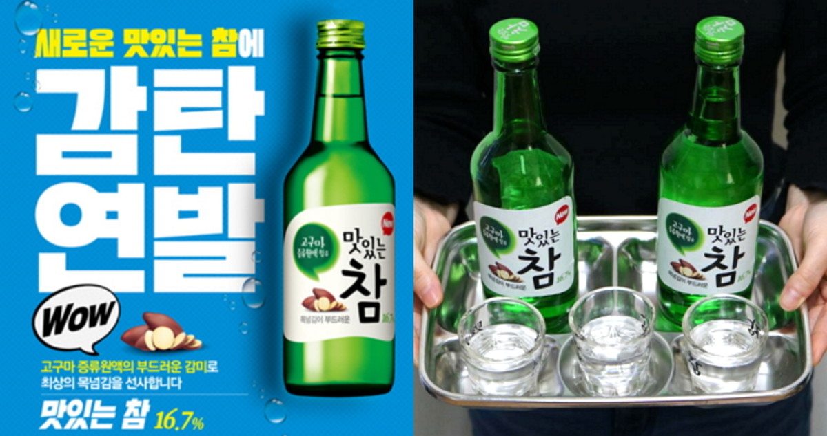 금복주의 'New 맛있는 참'은 고구마 증류 원액이 함유된 소주 제품이다.